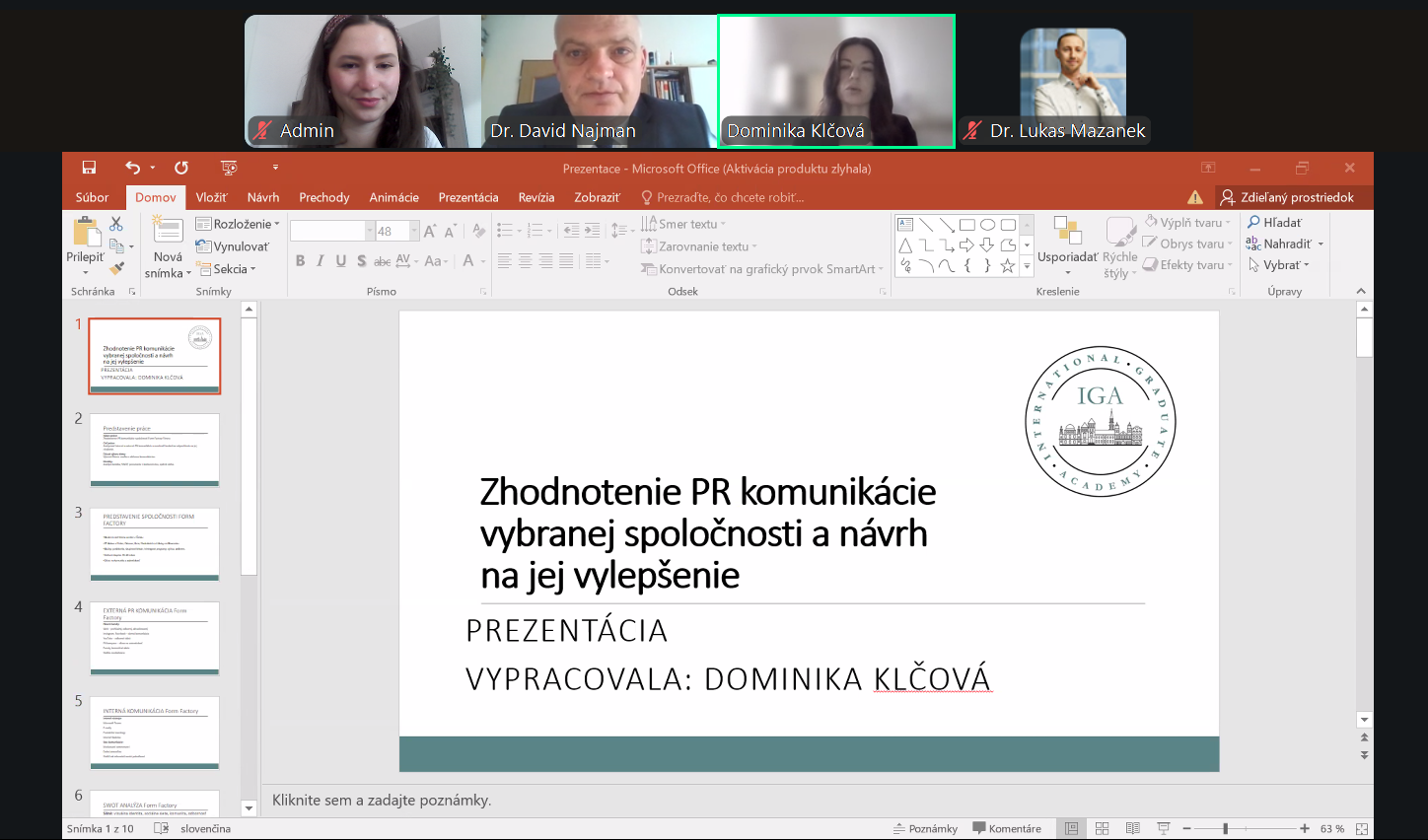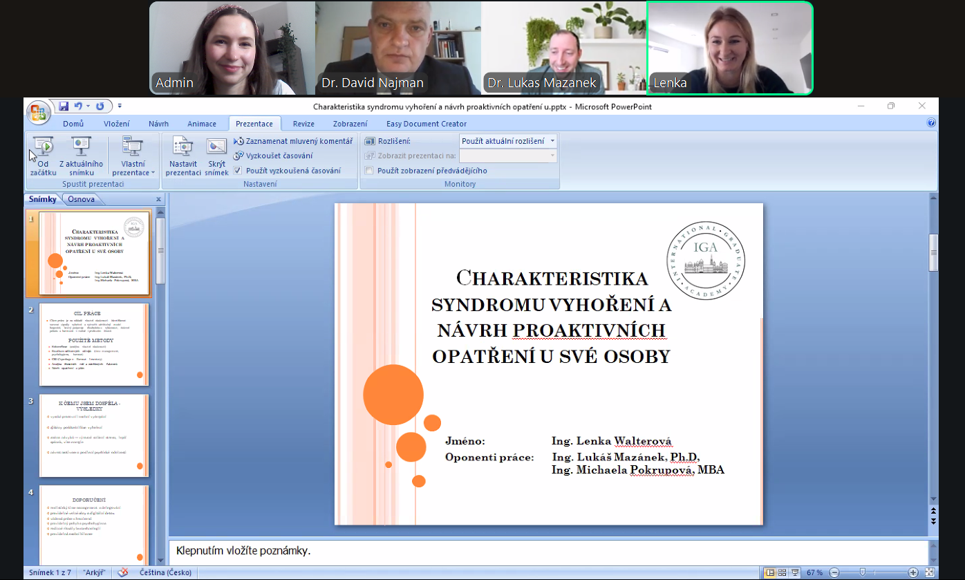 V International Graduate Academy jsme tento týden zažili výjimečné okamžiky. Studenti úspěšně obhajovali své závěrečné práce a prokázali vysokou odbornou úroveň i odhodlání dotáhnout své studium k úspěšnému konci. Každá obhajoba byla jedinečná a přinesla inspirativní myšlenky i kvalitní výsledky. Všem úspěšným absolventům srdečně gratulujeme a děkujeme, že jste součástí naší komunity.