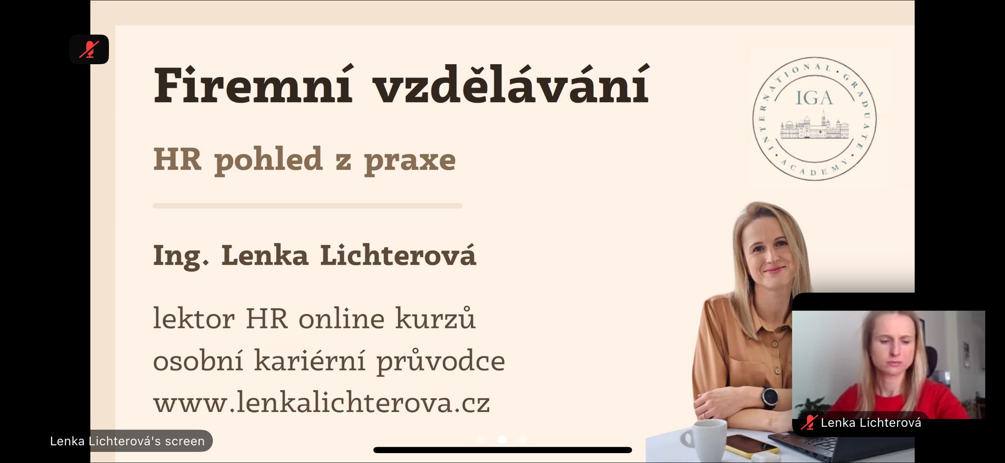 Dne 29. 4. 2025 proběhl online webinář: Firemní vzdělávání pohledem HR s lektorkou Ing. Lenkou Lichterovou.