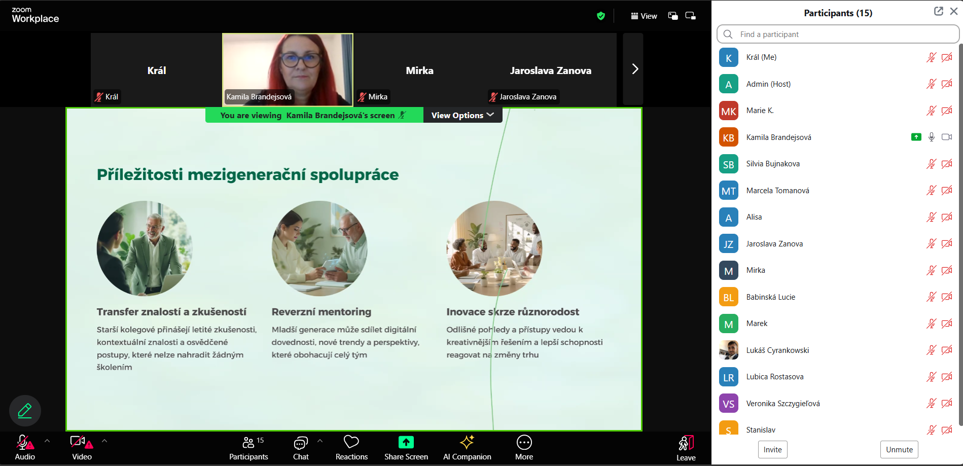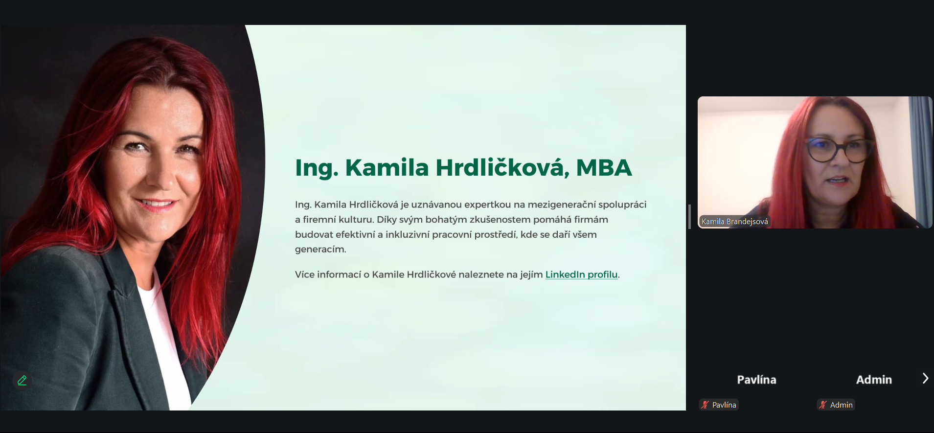 Dne 11. 12. 2025 proběhl webinář Mezigenerační spolupráce v moderním managementu s lektorkou Kamilou Hrdličkovou.
