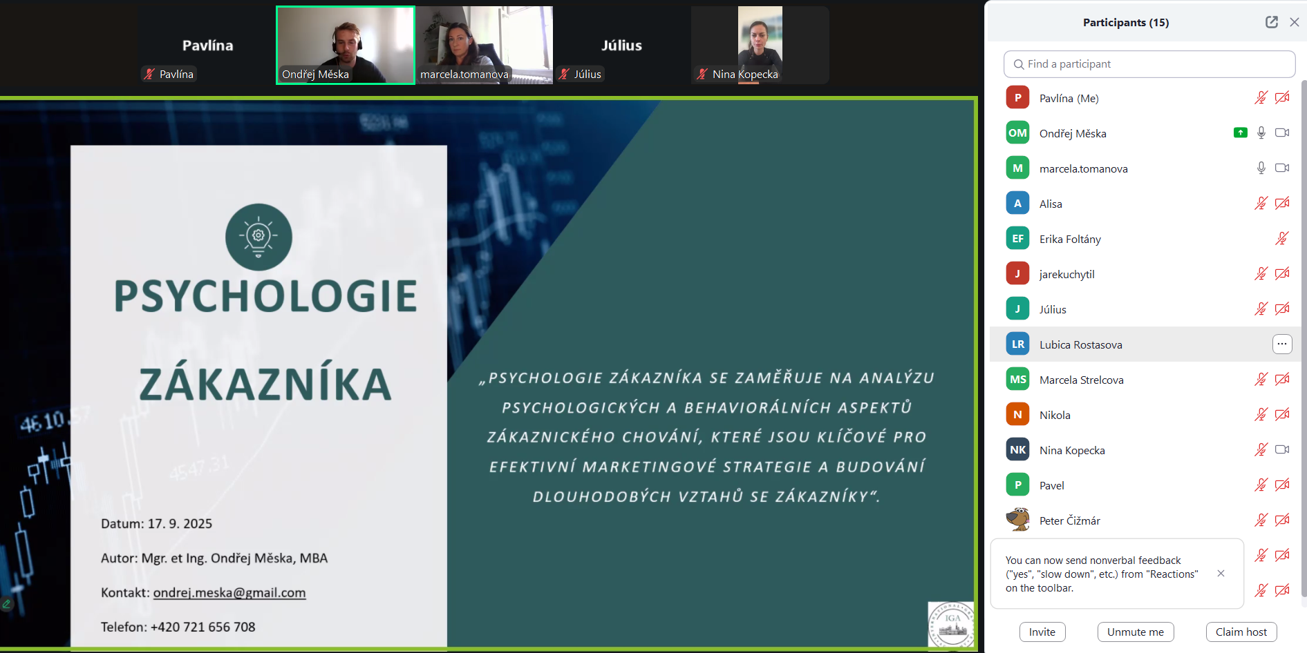 Dne 18. 9. 2025 proběhl online webinář: Psychologie zákazníka s lektorem Ondřejem Meškem.
